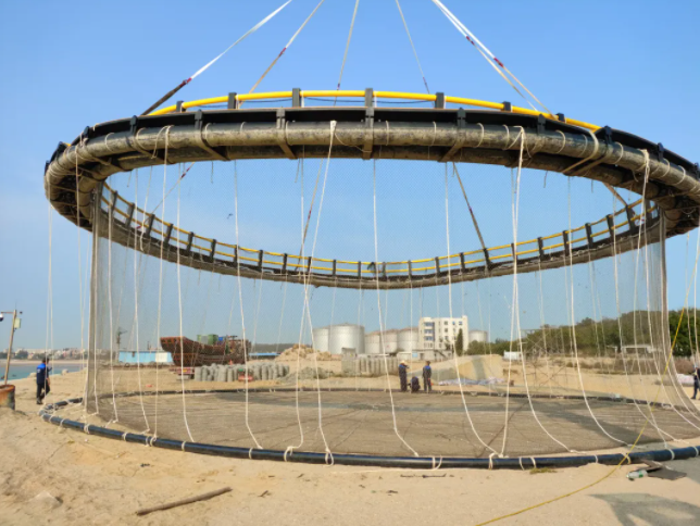 网箱的特点为可以在强台风来临前,下潜至水面一定深度,从而避开风浪的冲击。